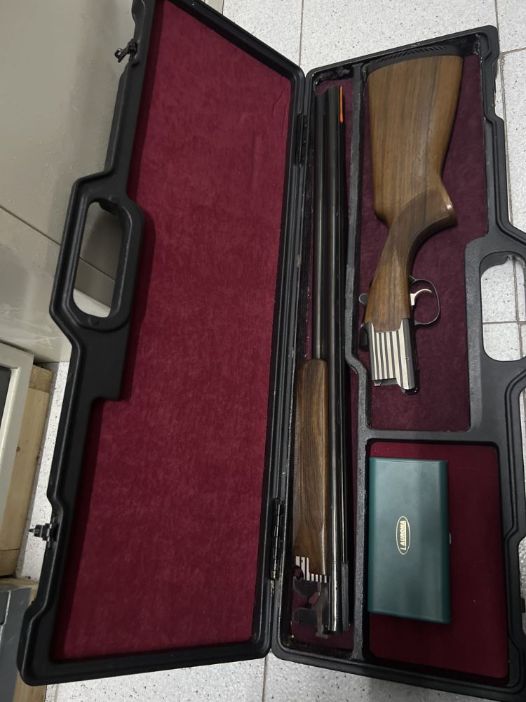 Se vende escopeta Laurona, modelo shilouete, calibre 12 superpuesta, selector de Tiro, expulsores, cañón de 74 cm, chokes interiores full 1, 2,3 y 4 estrellas, gatillo mregulable en distancia, maletín original Laurona restaurado interior caja original de chokes Laurona portes incluidos en península , contactar a través de telefono o WhatsApp en el 941588006