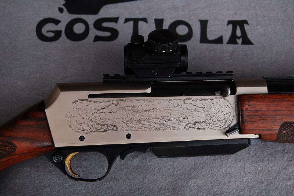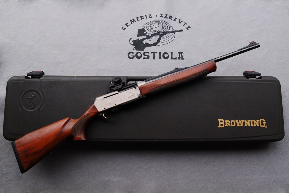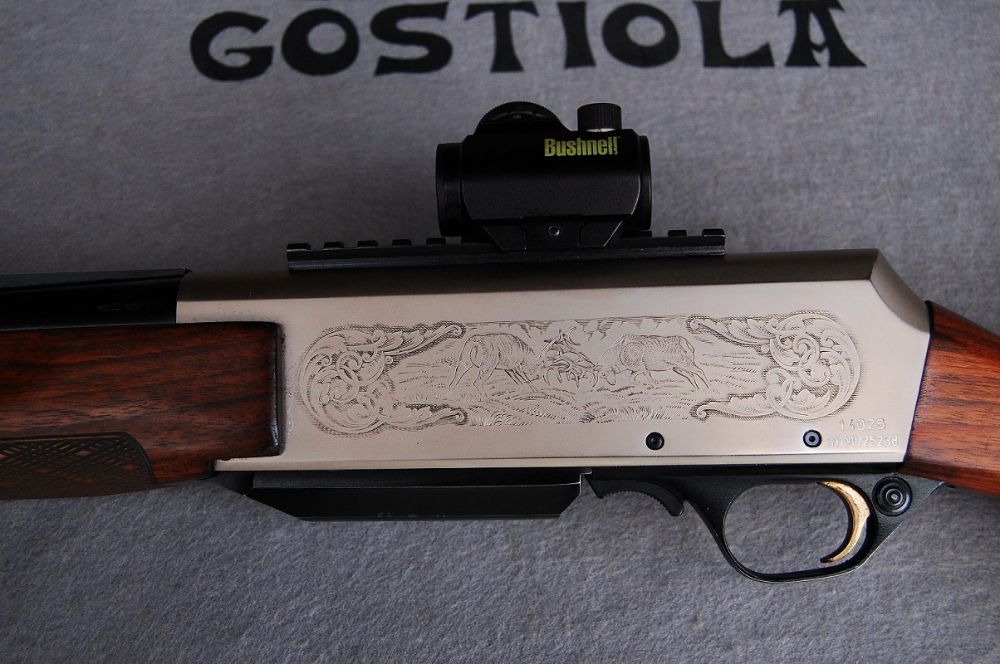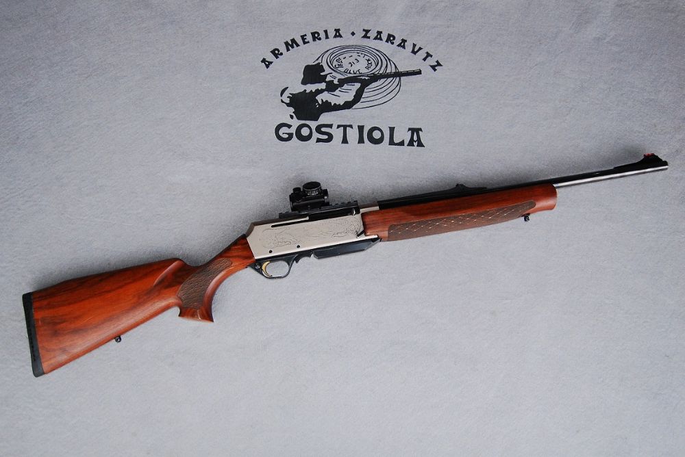 Fabuloso rifle Browning, modelo Long Trac Eclipse calibre 9, 3×62. Consta de base Weber y punto rojo, además de unos preciosos grabados sobre las pletinas, en los que se aprecian escenas de caza mayor. Se entrega con maletín original Browning de gama superior y portes pagados a toda la península. Incluye garantía de funcionamiento de un año. www. armeriagostiola. net // ZARAUTZ (Gipuzkoa)
